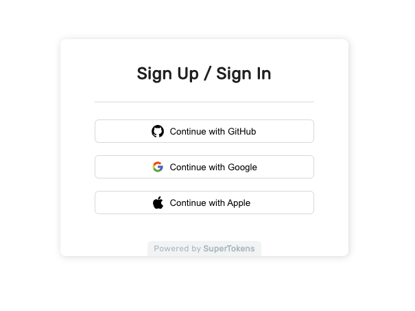 import ThirdParty, {Github, Google, Facebook, Apple} from "supertokens-auth-react/recipe/thirdparty";